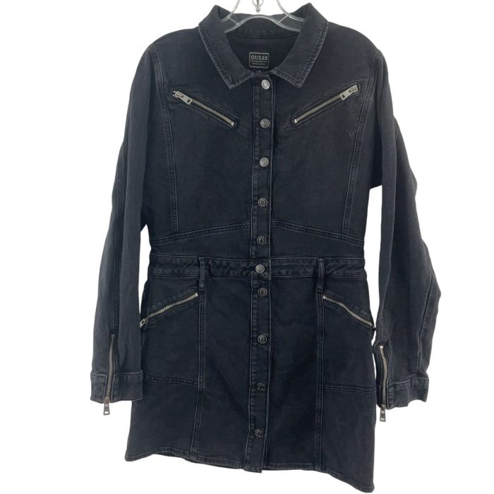 Home dresses Guess Y2K Black Denim Button-Up Shirt Dress Womens Size L Cotton Blend Preowned