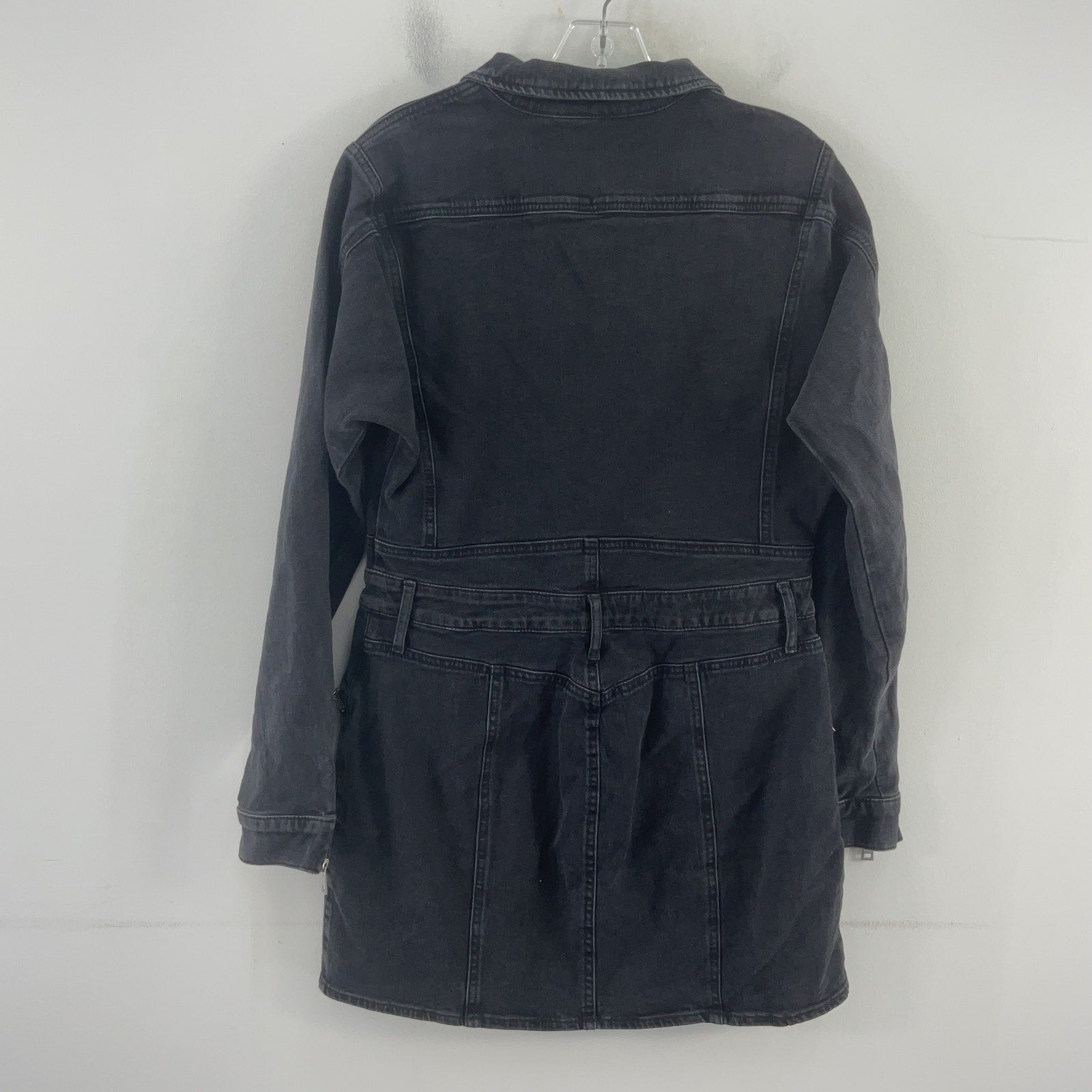 Guess Y2K Black Denim Button-Up Shirt Dress Womens Size L Cotton Blend Preowned