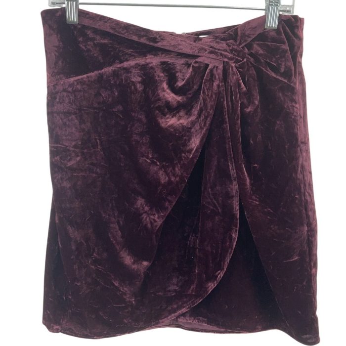 Loft Burgundy Velvet Twist Front A-Line Skirt Viscose/Nylon Women’s Size 6 NWT